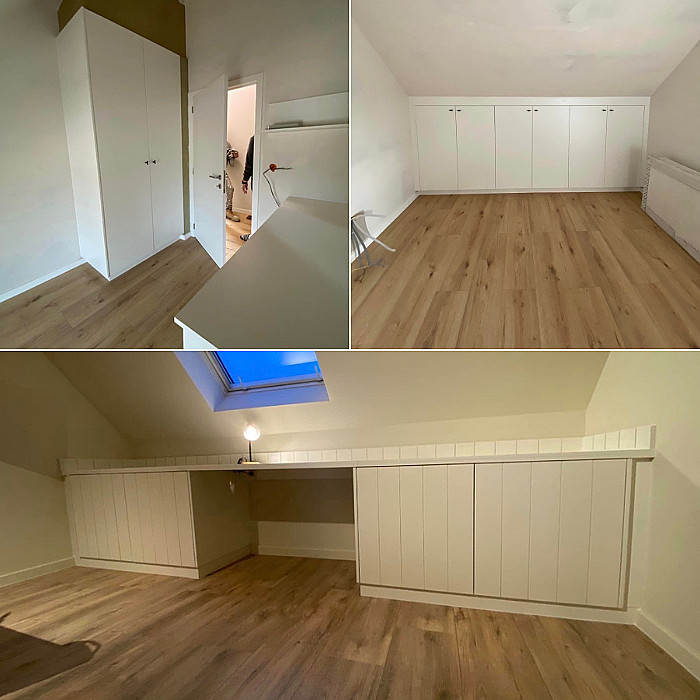 Onze vakmensen zetten hun expertise in voor uw projecten, waarbij ze ervoor zorgen dat elk detail zorgvuldig wordt afgewerkt en elk meubelstuk naadloos in uw interieur past. Of het nu gaat om het optimaliseren van een beperkte ruimte onder een schuin dak of om het creëren van een functionele en stijlvolle dressing, RenoMar is uw betrouwbare partner voor maatwerk meubels die functionaliteit en design combineren.